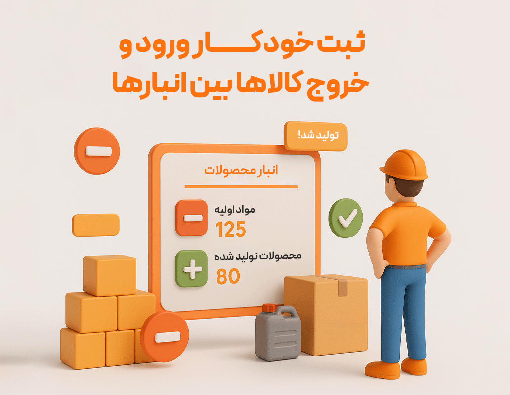 وقتی تولید انجام میشه، نرمافزار بهصورت خودکار: • مواد اولیه رو از انبار مبدأ کم میکنه • محصول نهایی رو به انبار مقصد اضافه میکنه • هزینهها رو همزمان ثبت میکنه